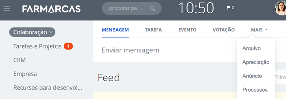 Clique em “Mais” e selecione a opção ” Processos”.