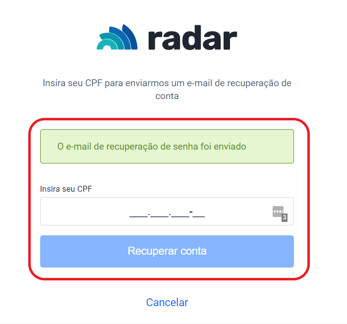 Agora é só acessar novamente o Radar, digitando seu CPF e a nova senha cadastrada e clicar em “Entrar”