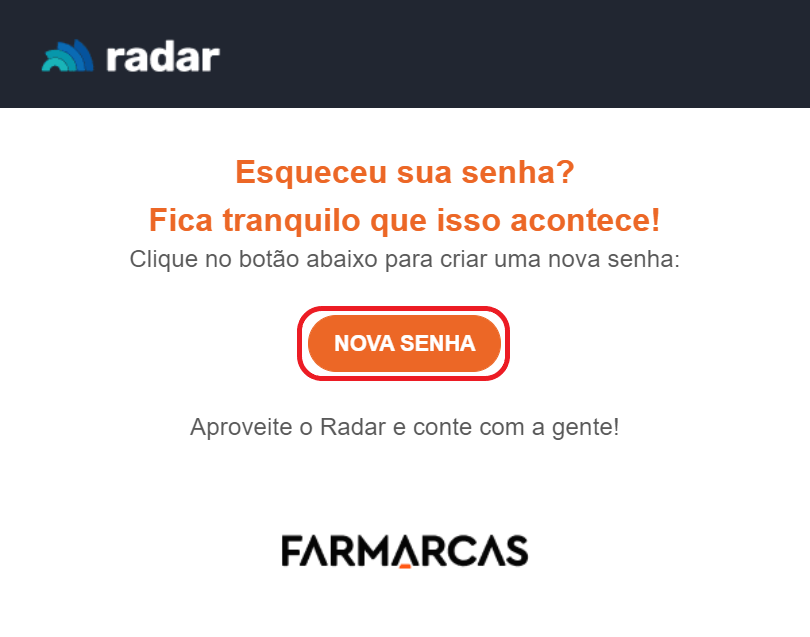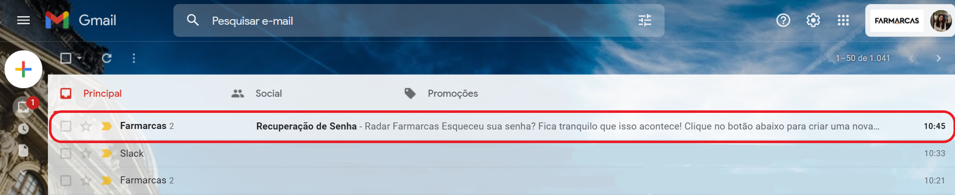 Acesse a caixa de entrada do seu e-mail e clique no e-mail Farmarcas – Recuperação de Senha