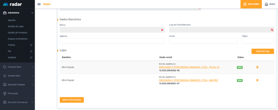 Caso o responsável da loja mude, seja por questões de compra ou administrativas, é necessário realizar a atualização de GE.