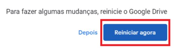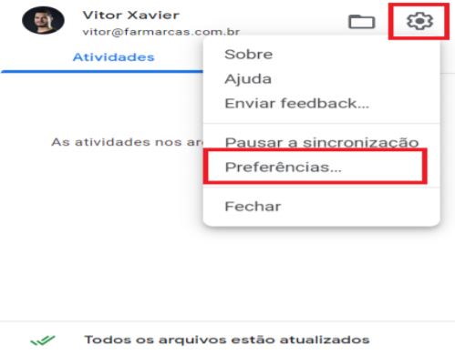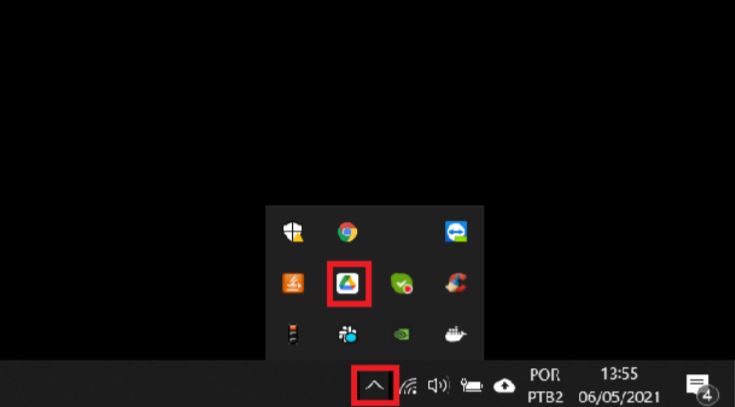 Clique na seta para cima da barra de tarefas do seu computador e em seguida clique no ícone do “Google Drive”