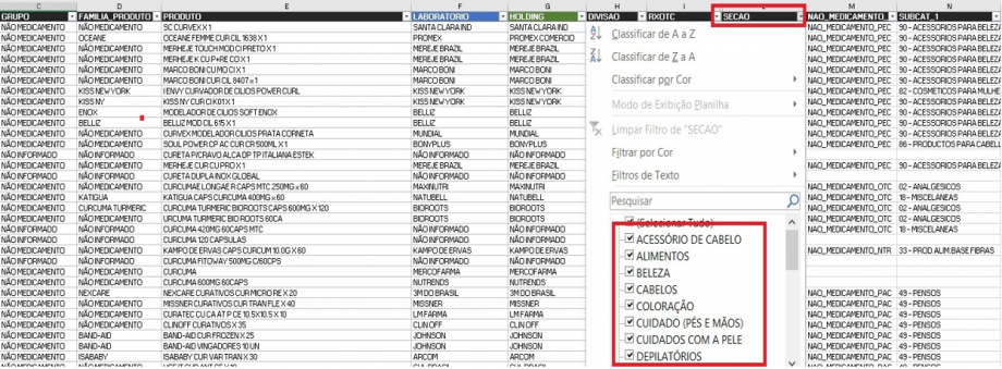 - A Análise é feita entre a base do acode e a árvore mercadológica para identificar e classificar os produtos de acordo com o relatório do IQVIA