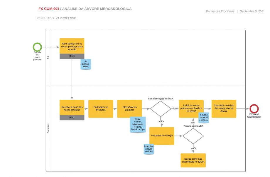 - Após o recebimento da base de inclusão, é iniciado a análise dos produtos e a classificação dos novos produtos de acordo com a sua finalidade.