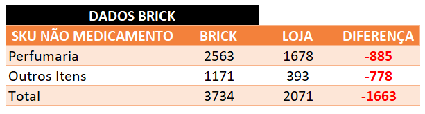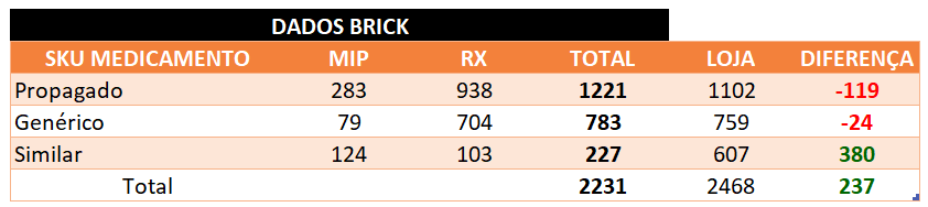 - Independentemente do tamanho da loja, sugerir que tenha entre 2500 à 3000 de SKUs de medicamentos e a partir de 1500 SKUs de não medicamentos e enviar a sugestão para a loja adaptar a sua realidade;
