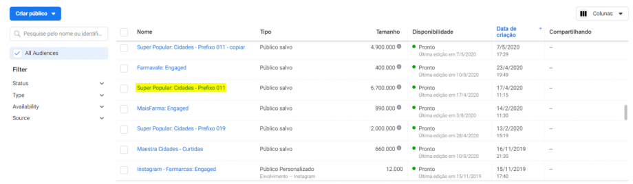 Todas as lojas da Farmarcas devem ser incluídas no FB Audience, assim como caso alguma loja saia da rede, deve ser retirada da ferramenta.
