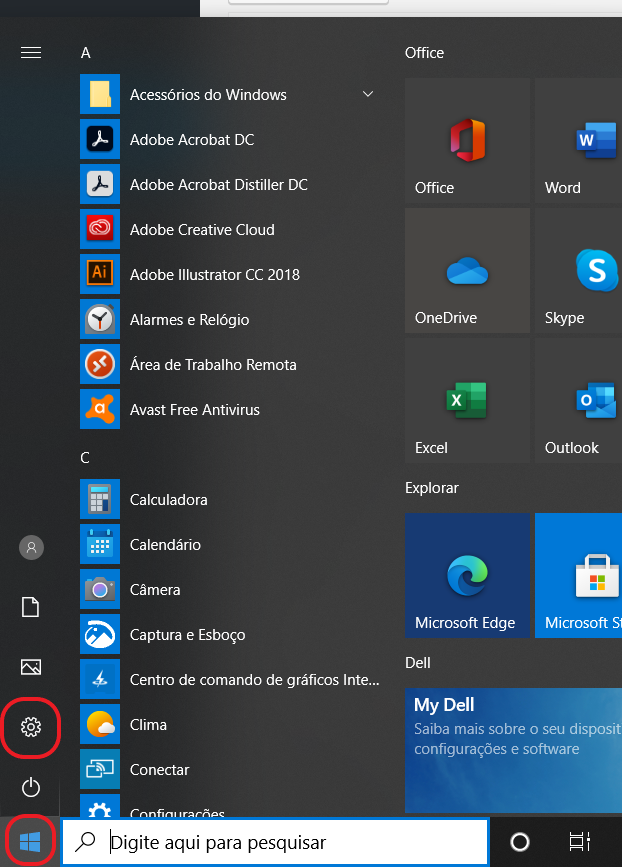 Acessar as configurações do windows