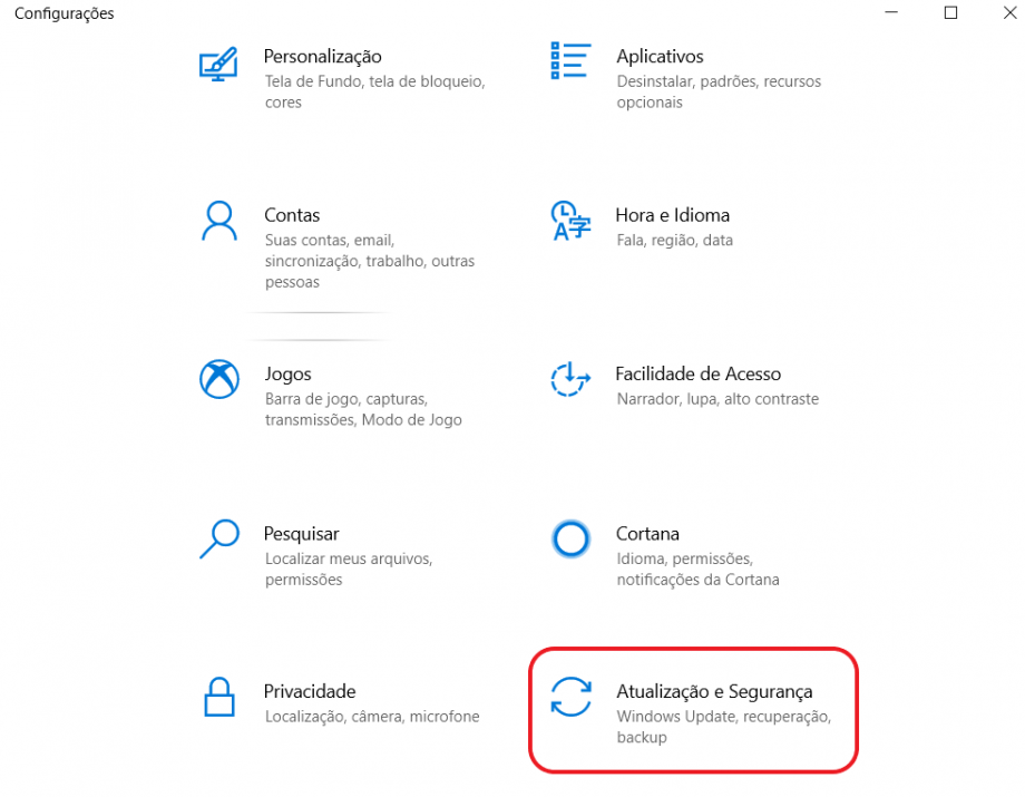 Clicar em “Atualização e Segurança”