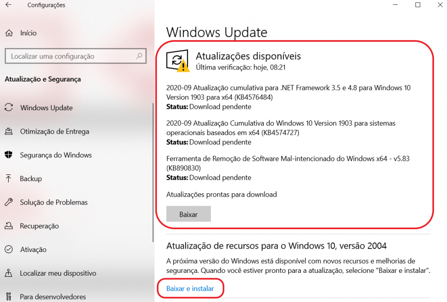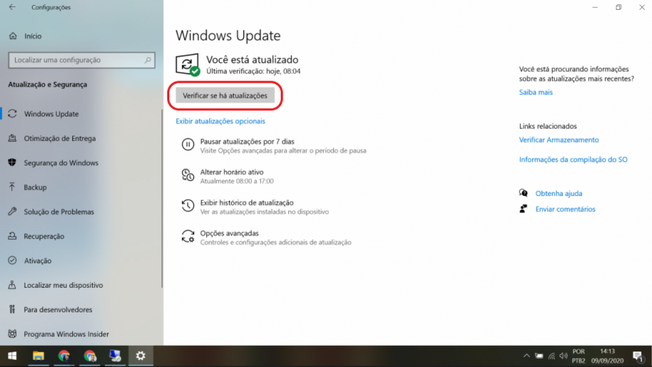 Clicar em “Verificar se há atualizações”