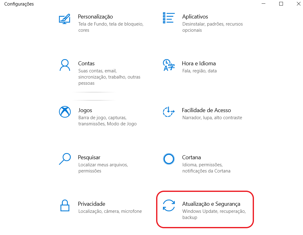 Clicar em “Atualização e Segurança”