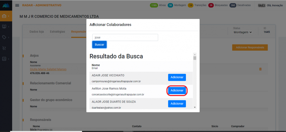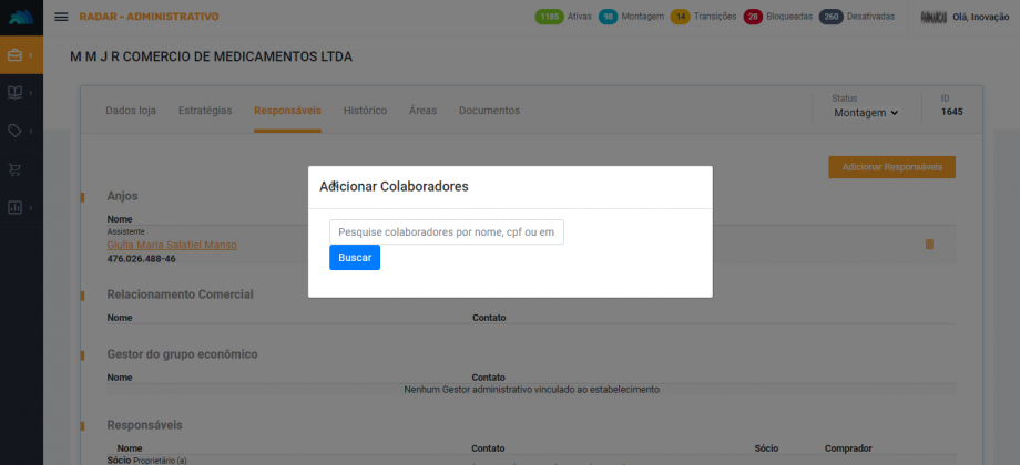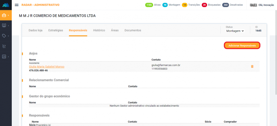 Quando uma loja é cadastrada no Radar (radar.farmarcas.com.br) deve ser incluído no cadastro o associado responsável pela loja.
