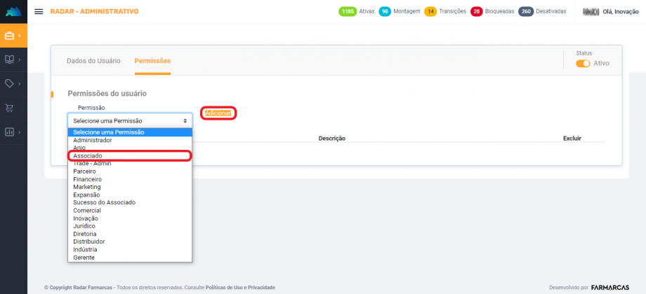 Para definir quais áreas do Radar o associado poderá visualizar, acesse o artigo