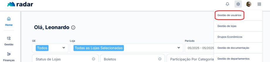 Clique em “Gestão de Usuários”
