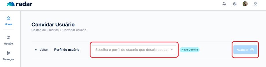 Adicione o perfil de usuário que deseja cadastrar e clique em “Avançar”.