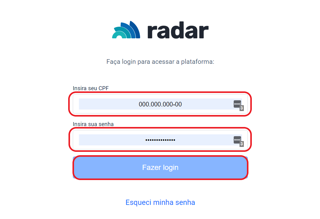 Acesse o Radar com o seu CPF e sua senha e clique em “Entrar”