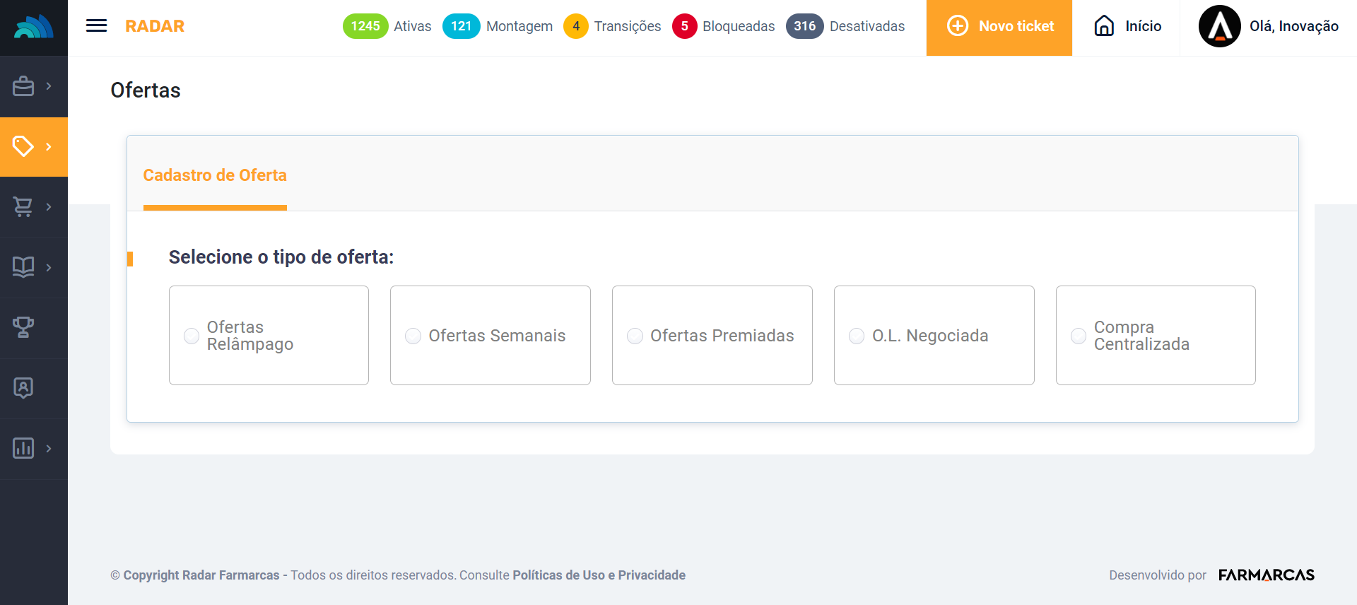 O cadastro de ofertas no Radar tem como objetivo comunicar os associados sobre produtos (medicamentos ou não medicamentos) que estão com descontos para compra no SIC.