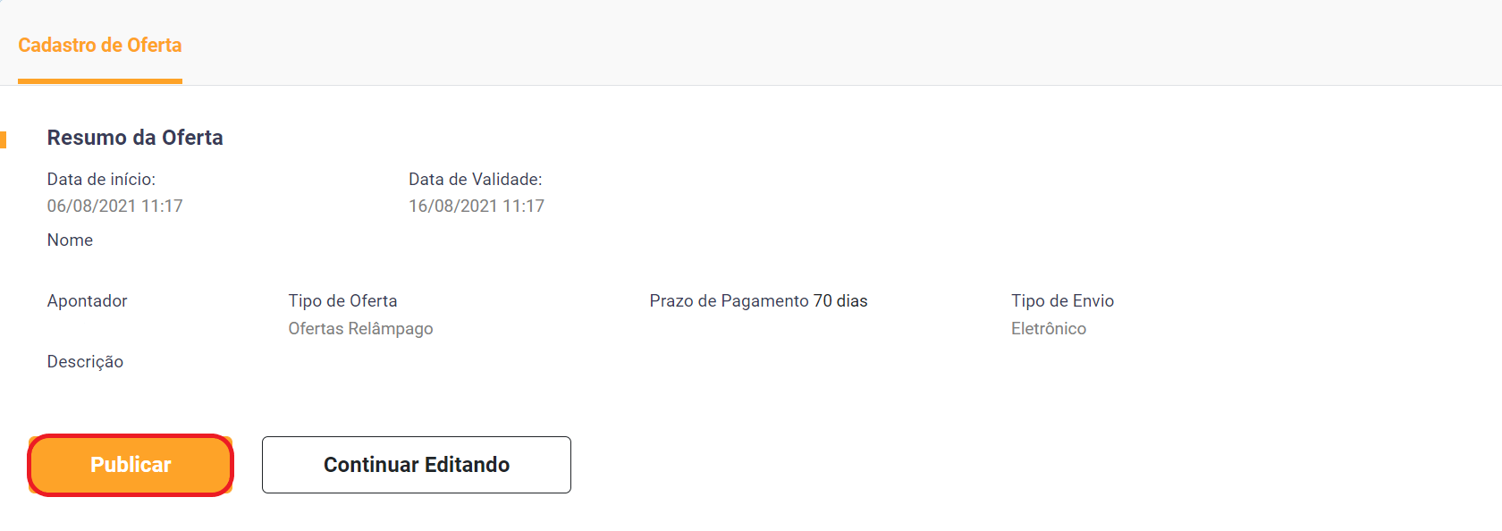 Clique em “Continuar editando” para voltar ao cadastro da oferta/campanha.