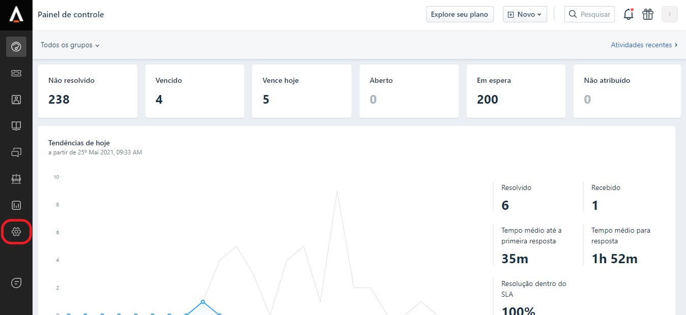 A pagina será redirecionada para a tela inicial, em seguida clique na engrenagem