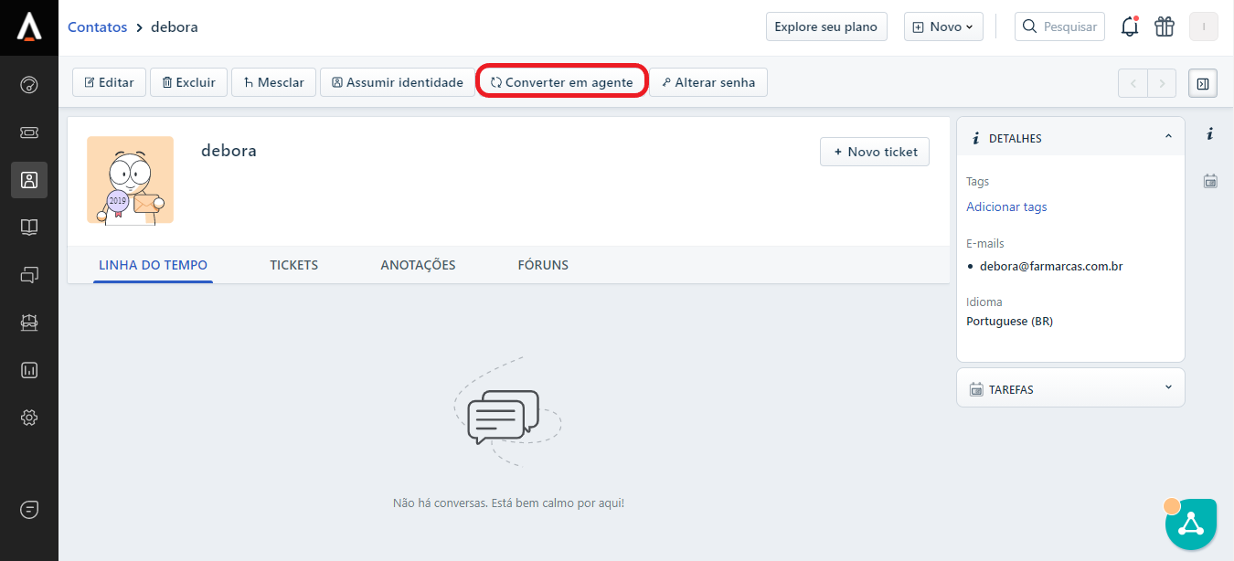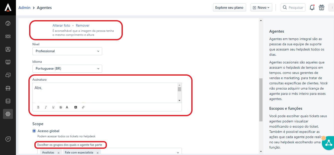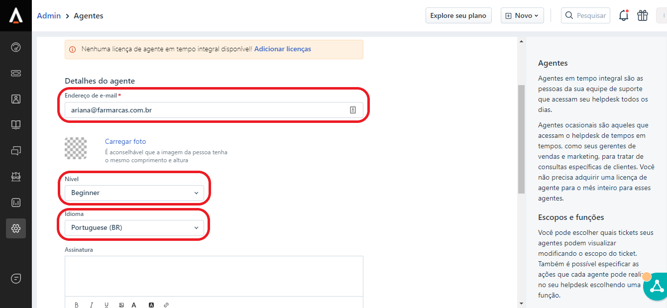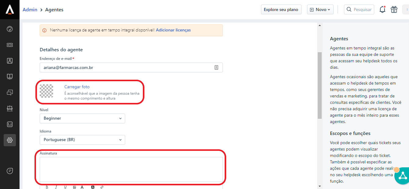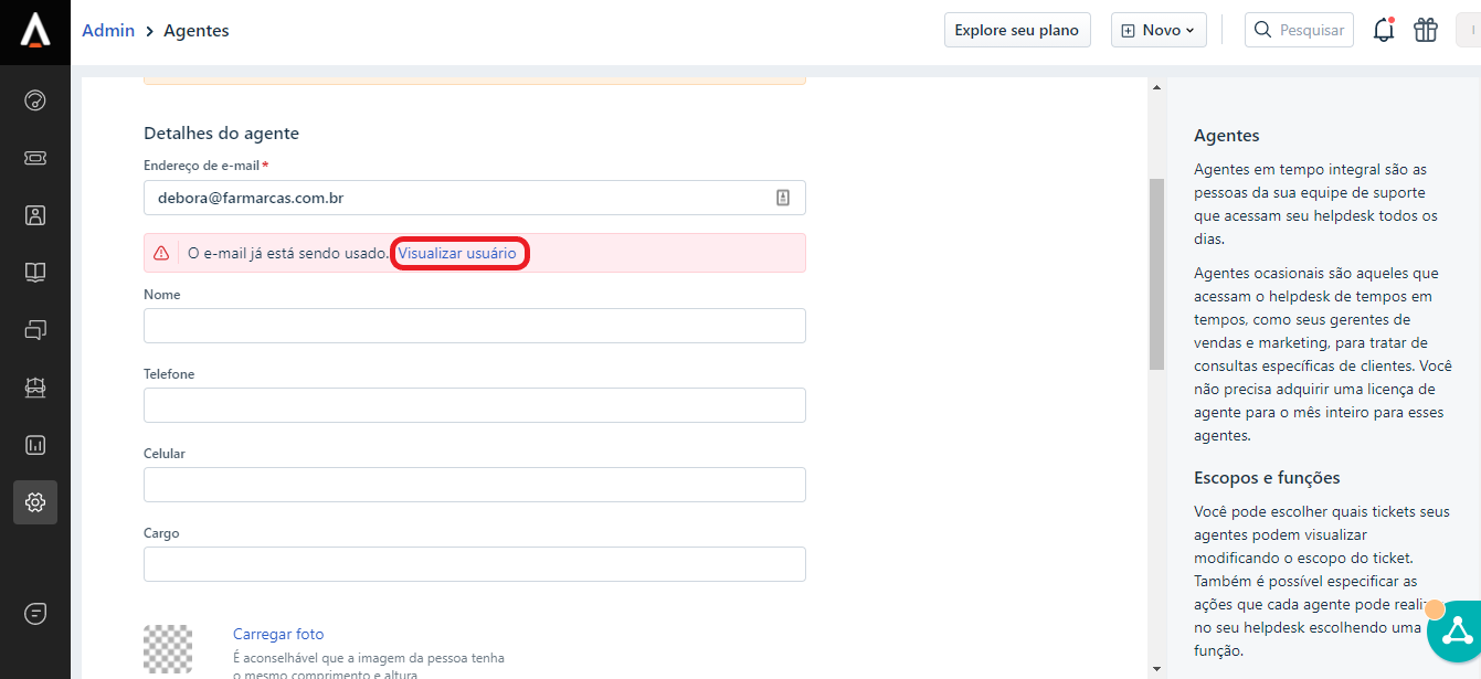 O tipo de agente “Ocasional” é uma liberação de apenas 1 dia de utilização do Freshdesk.