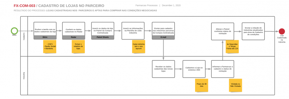 A solicitação chega através do time de Expansão, é aberta uma tarefa no Bitrix com as informações necessárias para o inicio do cadastro das lojas nas Industrias Parceiras da Compra Centralizada.