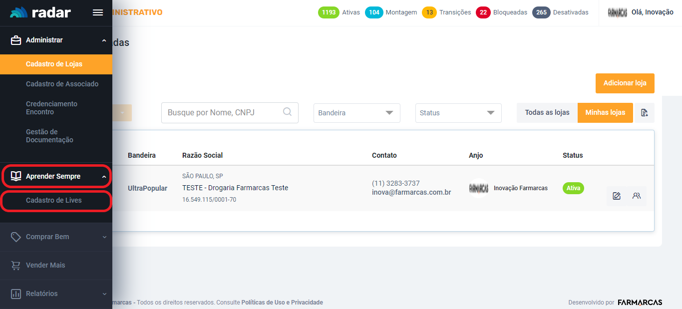 A live é uma opção de interação visual que utiliza recursos de áudio e vídeo próprios da Farmarcas para treinamentos e comunicação interna e externa.