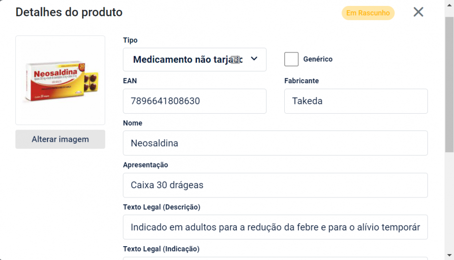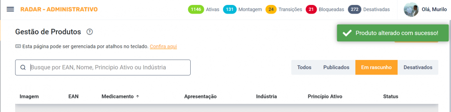 - Em rascunho – Os produtos que não concluíram o cadastro