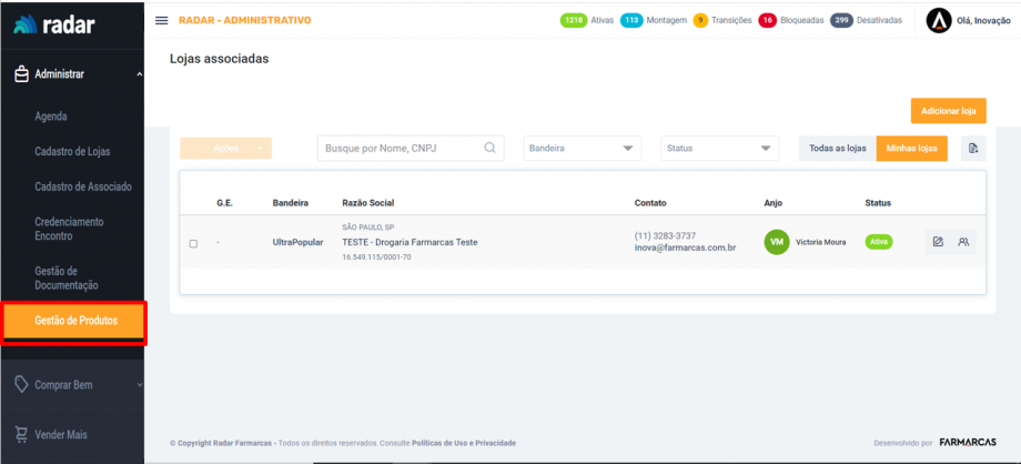 No menu lateral esquerdo, clique em Gestão de Produtos