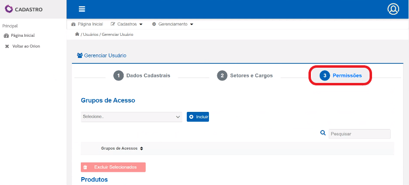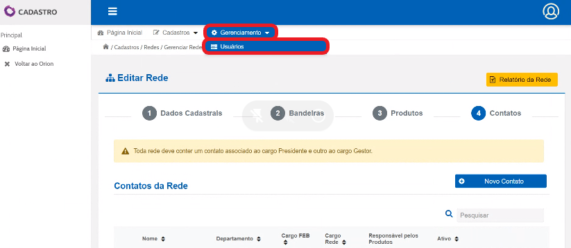 Na Página Inicial, selecione “Gerenciamento” e em seguida “Usuários”.