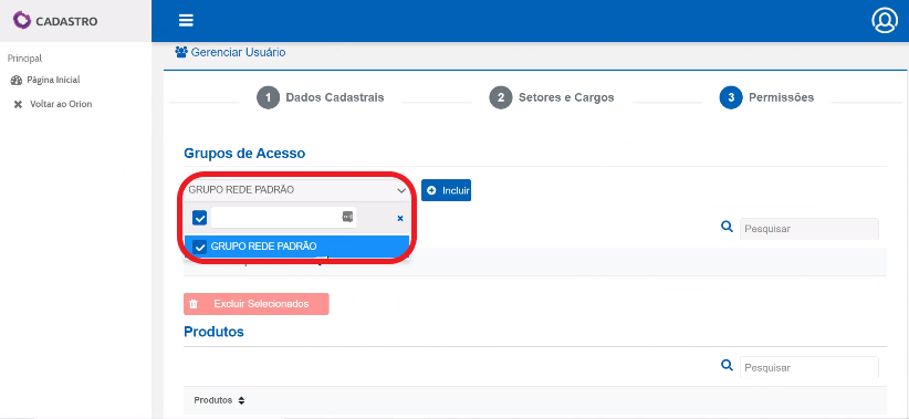 Em “Grupo de Acesso” selecione a opção “Grupo Rede Padrão”.