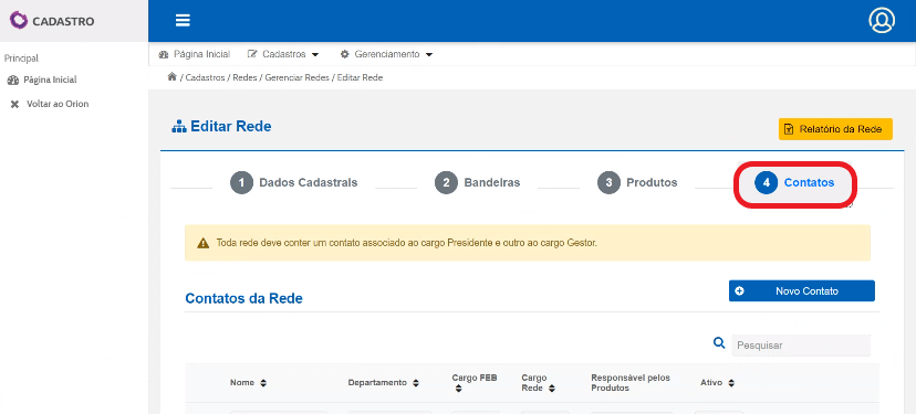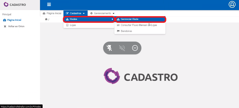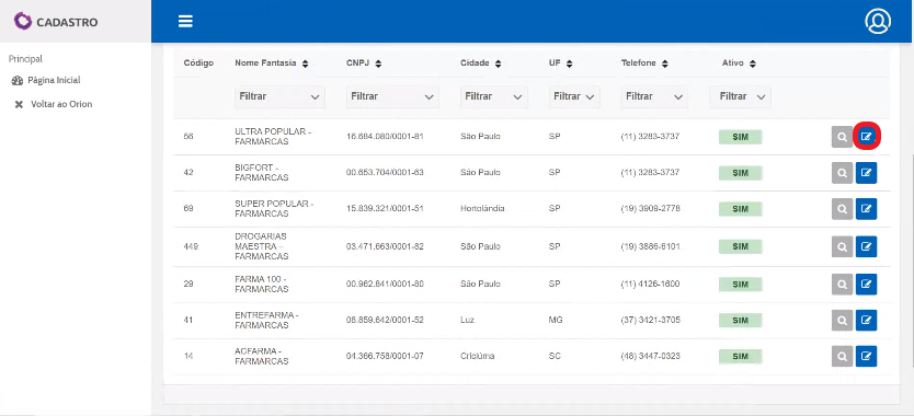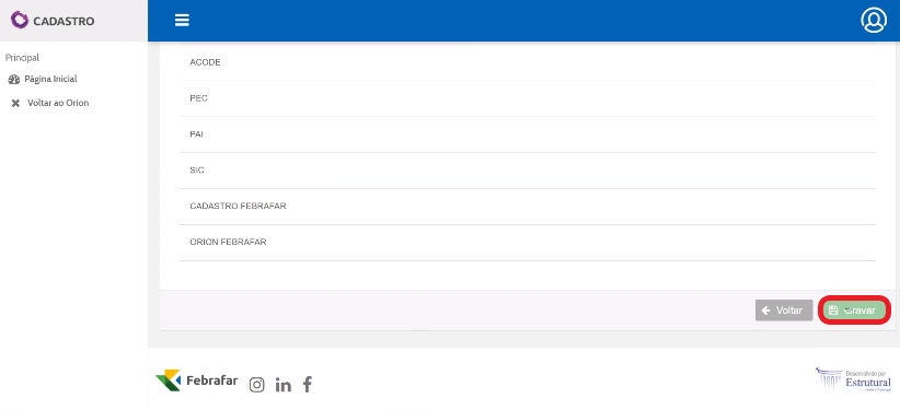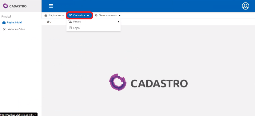 Na pagina inicial, clique em “Cadastros”.