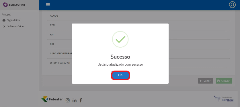 Após receber uma mensagem de sucesso, clique em “Ok”.