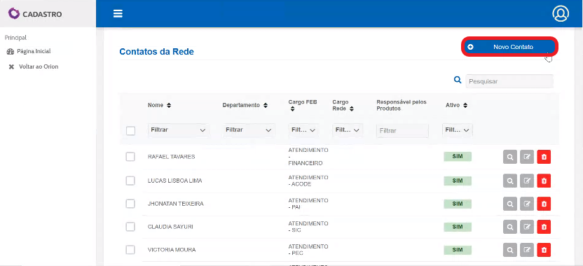 No canto superior, clique em “Novo Contato”.