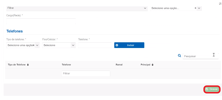 Depois de preencher as informações, clique em “Gravar”.