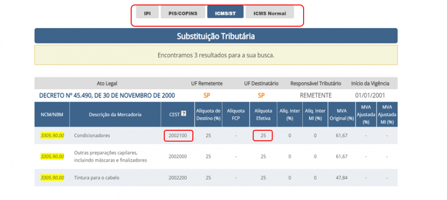 Após analisar o CEST que está correlacionado ao produto, identificamos a alíquota e redução se for caso.