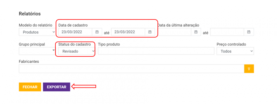 selecione a data desejada e o status como revisado, depois clique em exportar: