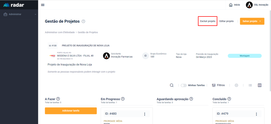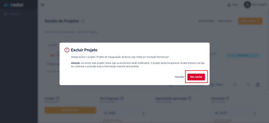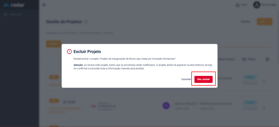 Como excluir um projeto