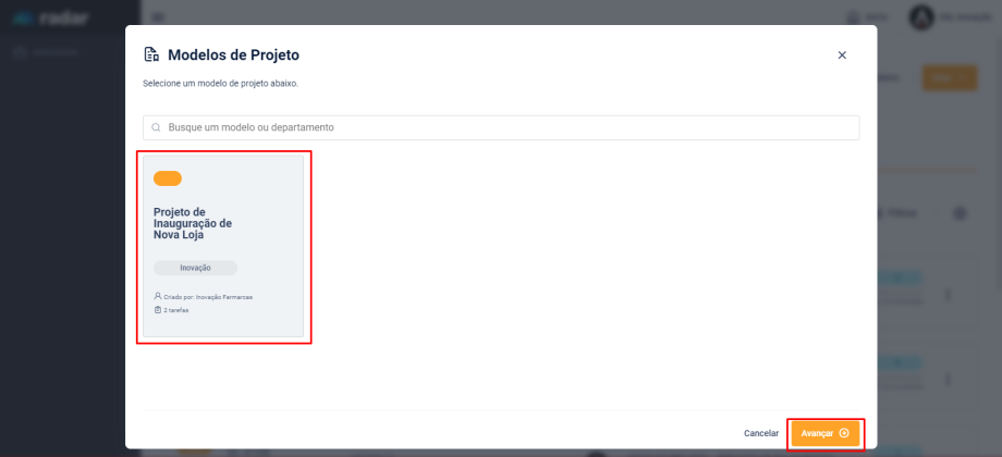 Selecione o modelo desejado para utilização e clique em “Avançar”