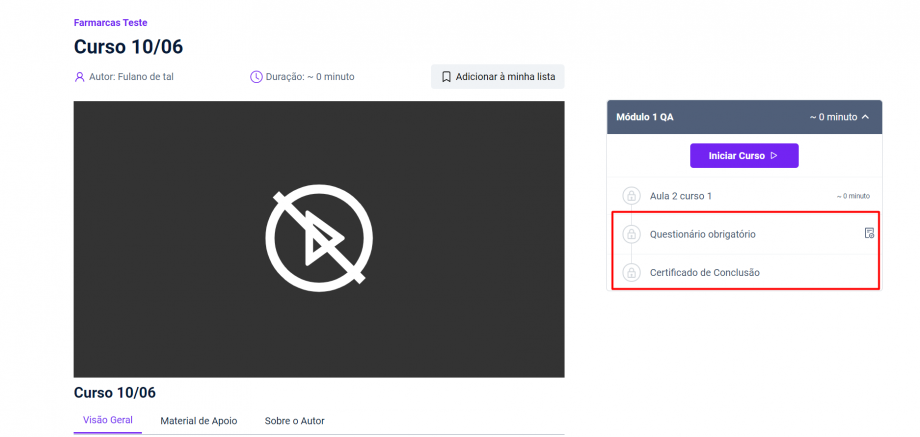Questionário obrigatório e Certificado de conclusão (Quando o associado responder o questionário e atingir o aproveitamento de no mínimo 90%, será liberado o certificado)