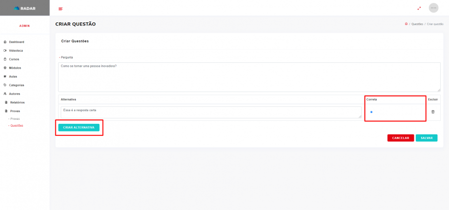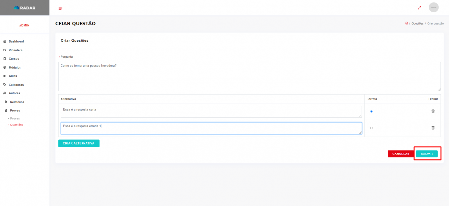 Após criar todas as alternativas desejadas, clique em “Salvar”