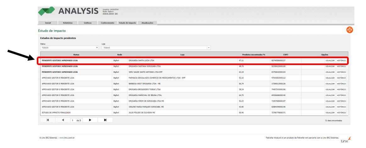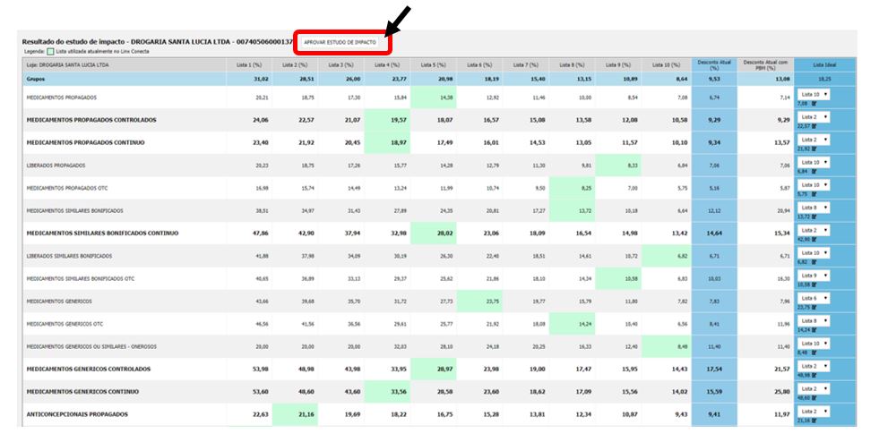 - Após aprovação da lista, o empresário deve acessar o portal do Febrafar Analysis, clicar em estudo de impacto e confirmar ou alterar a definição de lista.