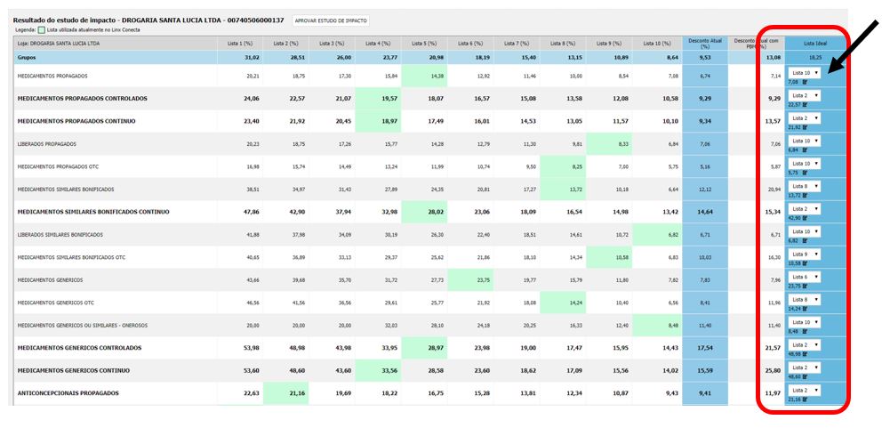 - Após abrir o estudo, o portal da Febrafar Analysis disponibilizará 10 listas de descontos, sendo 1 a mais agressiva e a 10 a mais conservadora.
