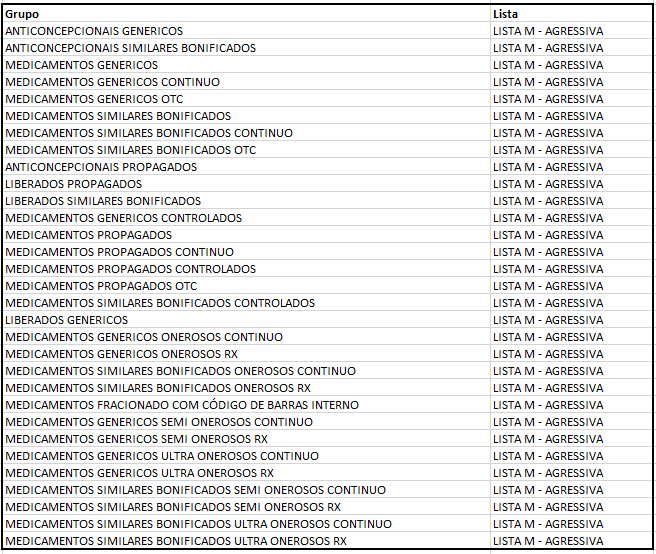 Após definir as listas de descontos do PEC, o analista precisa preencher a planilha abaixo de acordo com as definições, e abrir um ticket via plataforma Movidesk para Febrafar.
