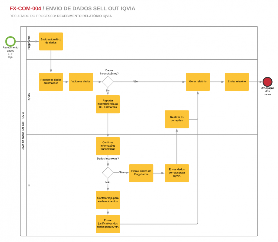 O objetivo desse processo é informar ao mercado os dados Sell Out, ou seja, as vendas das Lojas de todas as redes da Farmarcas. Esses dados são disponibilizados ao mercado, através das informações obtidas em relatórios gerados pela IQVIA.
