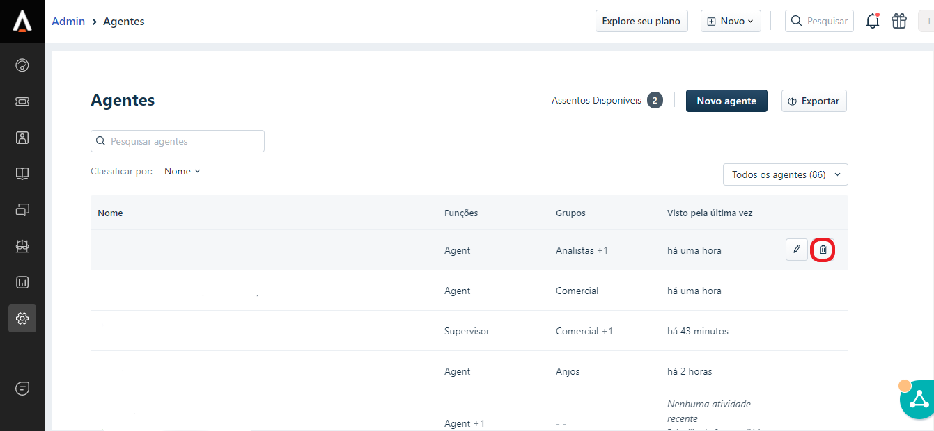 Para excluir os usuários no Freshdesk