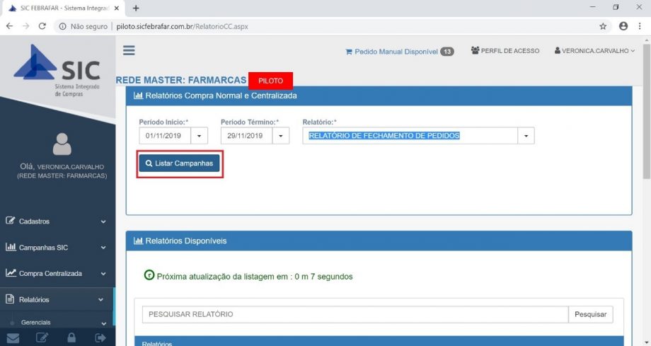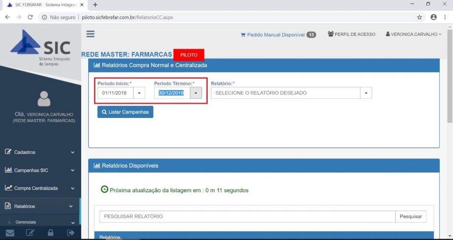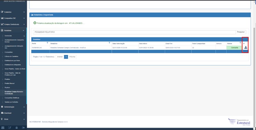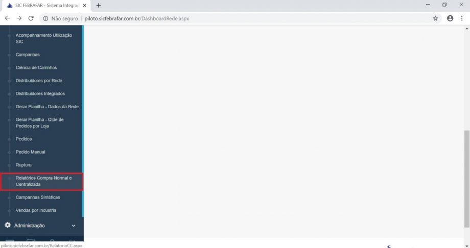 Selecionar a opção “Relatório de Compra Normal e Centralizada”