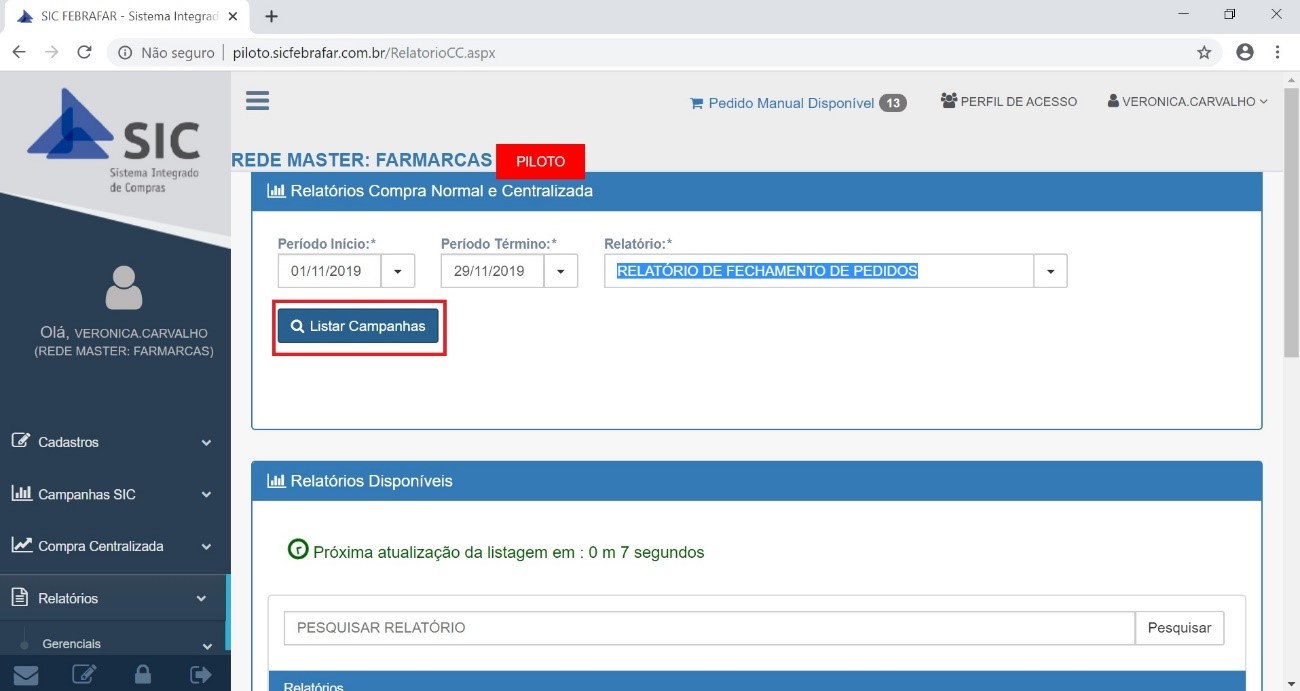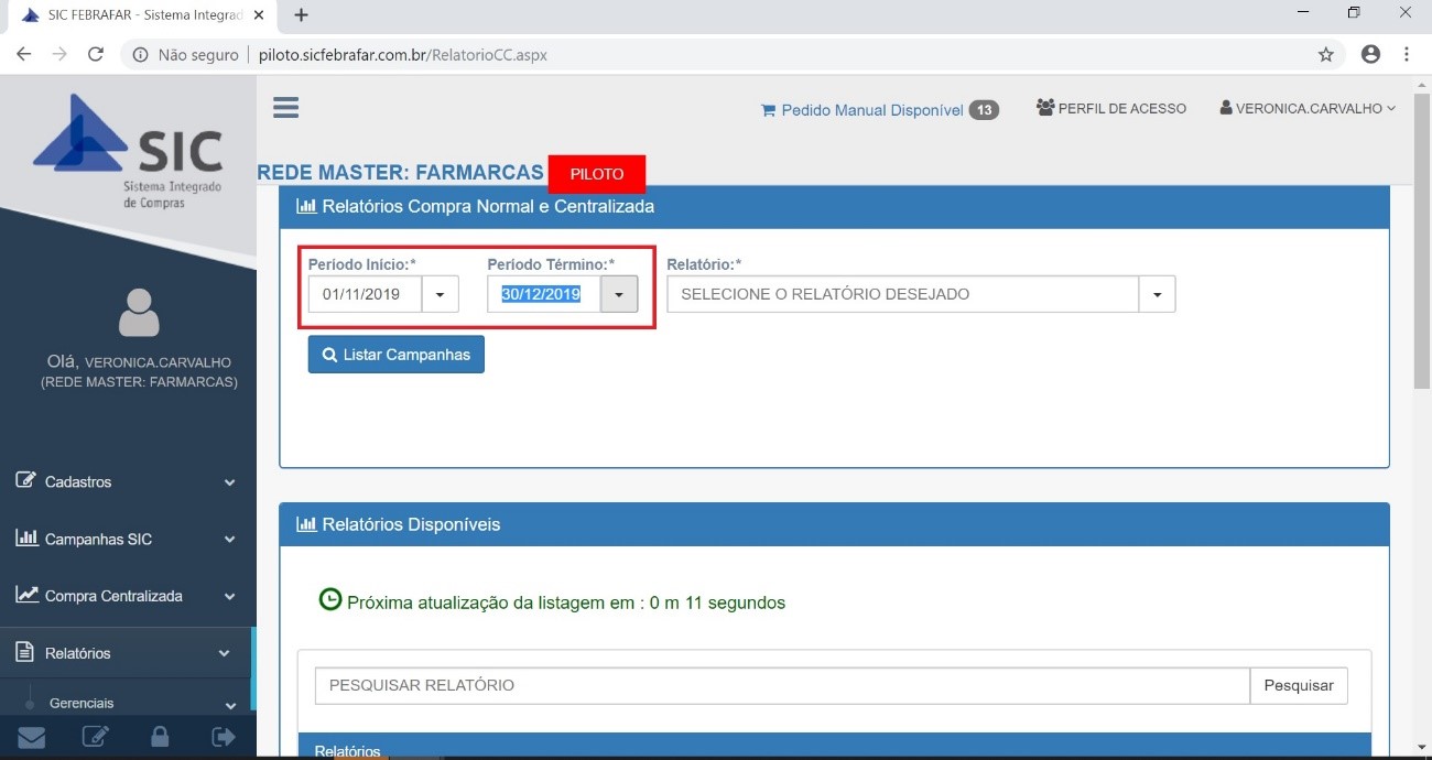 Os relatórios do SIC de compra normal (OL) e compra centralizada são dados que mostram a movimentação de compra por meio do nosso canal de compras (SIC), nele é possível visualizar as informações dos pedidos feitos pelo associado ou que foram gerados pelo sistema automaticamente, verificar o valor de faturamento, a data e horário de edição do pedido.