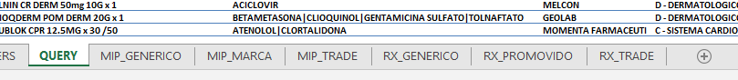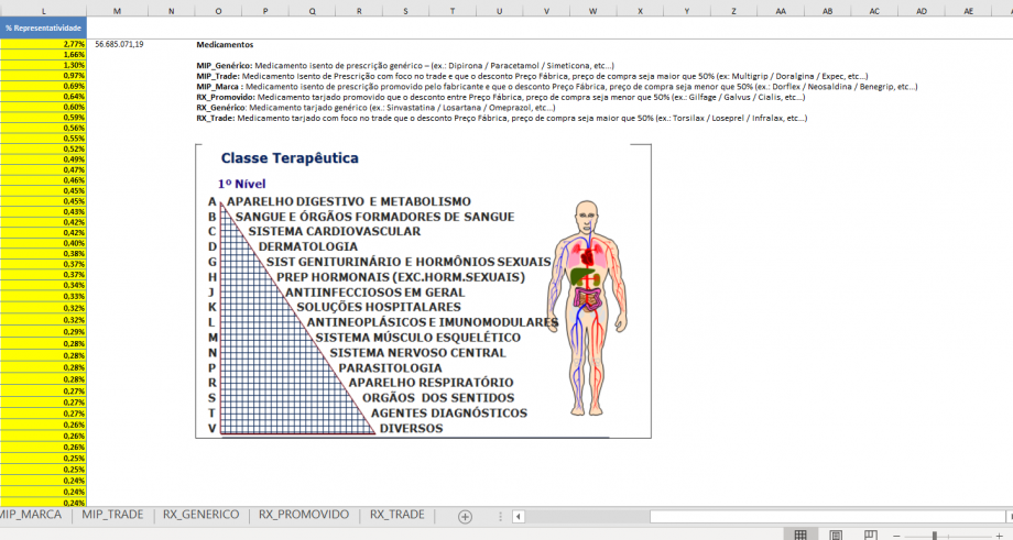 Criar novas abas na planilha: MIP_GENERICO, MIP_GENERICO, MIP_MARCA, MIP_TRADE, RX_GENERICO, RX_PROMOVIDO, RX_TRADE