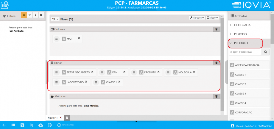 Clicar em “Atributos” > “Períodos” > e arrastar o item “MAT” para “colunas”