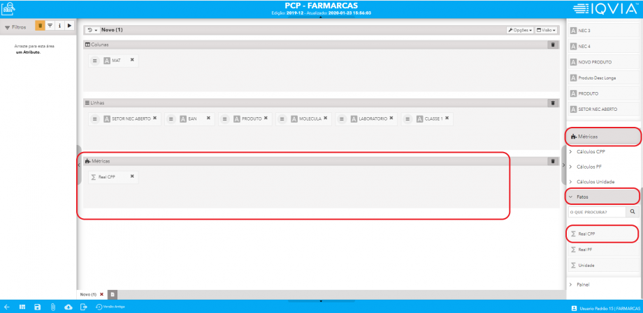 Clicar “Métricas” > “Fatos” > Arrastar “Real CPP” para “métricas”