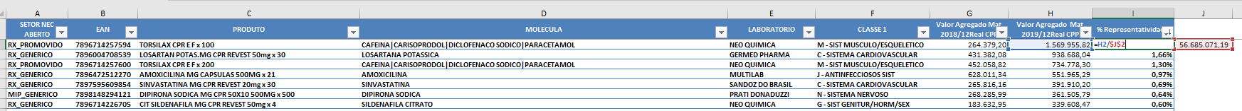 Criar coluna com o nome ” % Representatividade ”