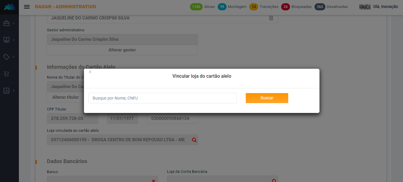 Informação de atenção | Deve ser questionado ao associado quem será o responsável pelo Cartão Alelo e qual loja deverá ser vinculada para que seja inserido neste campo do Radar |